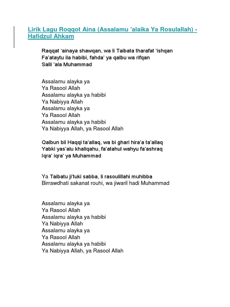 Lirik Qasidah Roqqota Aina Assalamu Docx Lirik Qasidah Roqqota Aina Assalamu Alaika Yaa Rasulallah Assalamualayka Ya Ya Rosulallah Yaa Course Hero