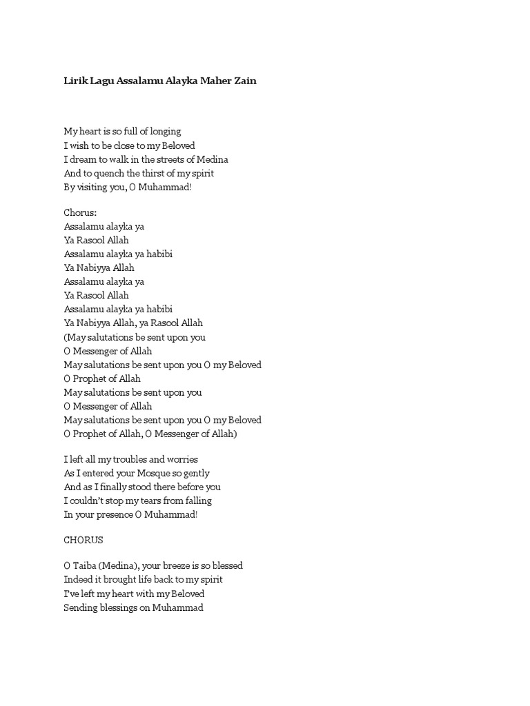 Lirik Lagu Assalamu Alayka Maher Zain Pdf